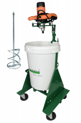 Ideaal voor het mengen en transporteren van egaline en andere vloeivloeren. Capaciteit: 3 zakken egaline á 25 kg. Uitgieten of in emmers of direct op de vloer. Inclusief menggarde en mengemmer 60 liter, exclusief watermeter € 200,-, aansluiting stofafzuiging € 38,50